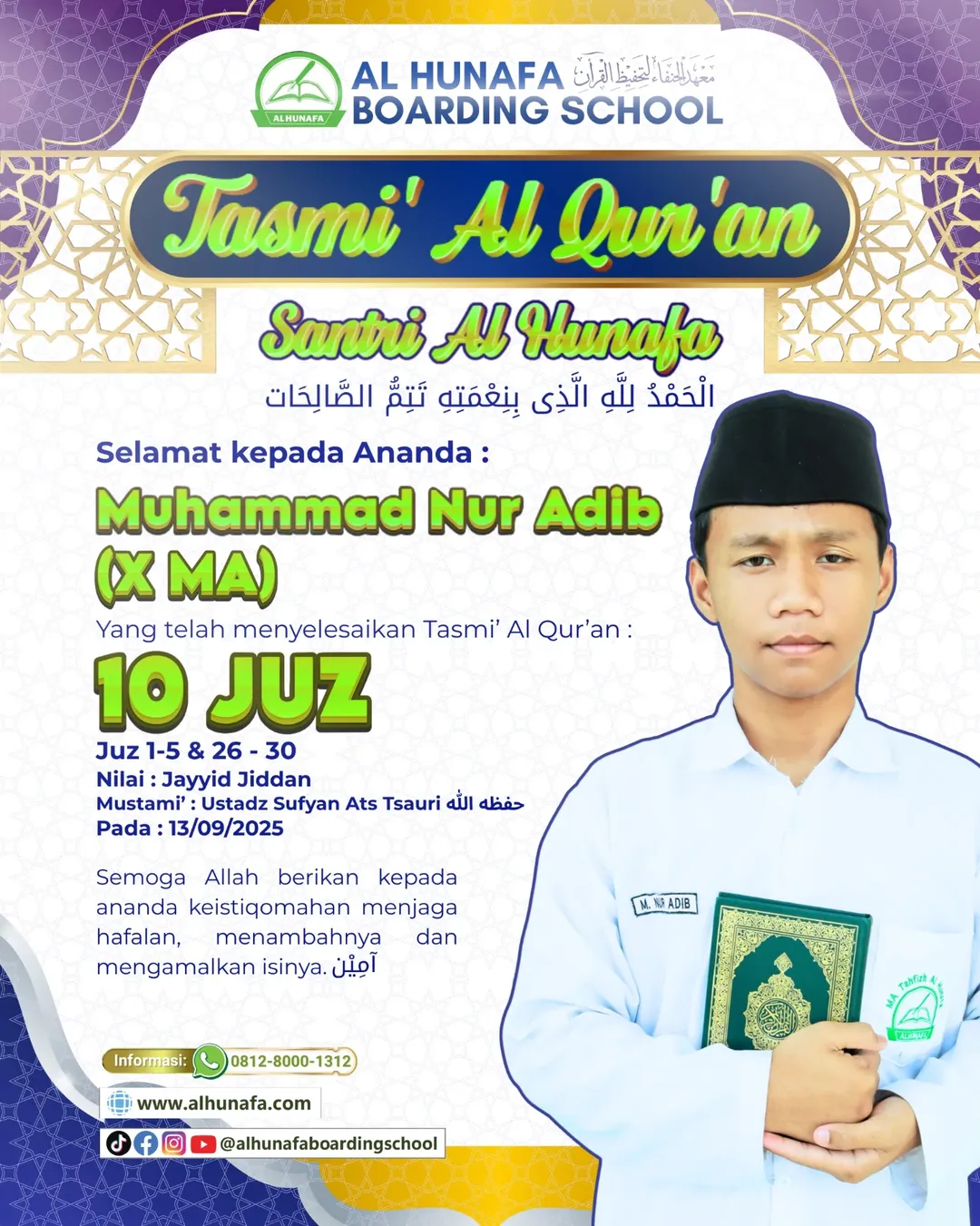 Semoga ALLAH berikan ananda keistiqomahan menjaga hafalan, menambahnya, dan mengamalkan isinya. آمين